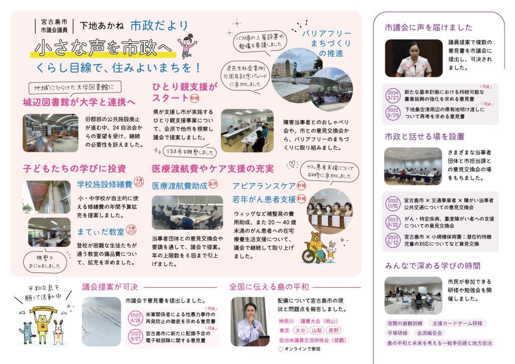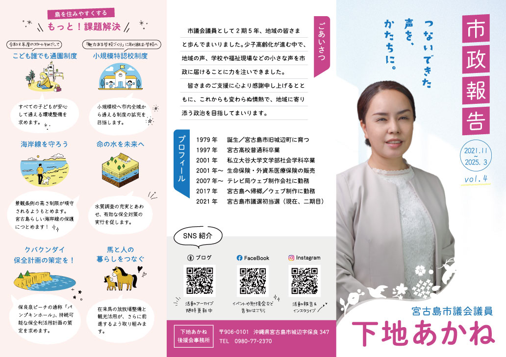 宮古島市議会議員としての2期、4年10ヵ月間の取り組みをリーフレットにしています。
